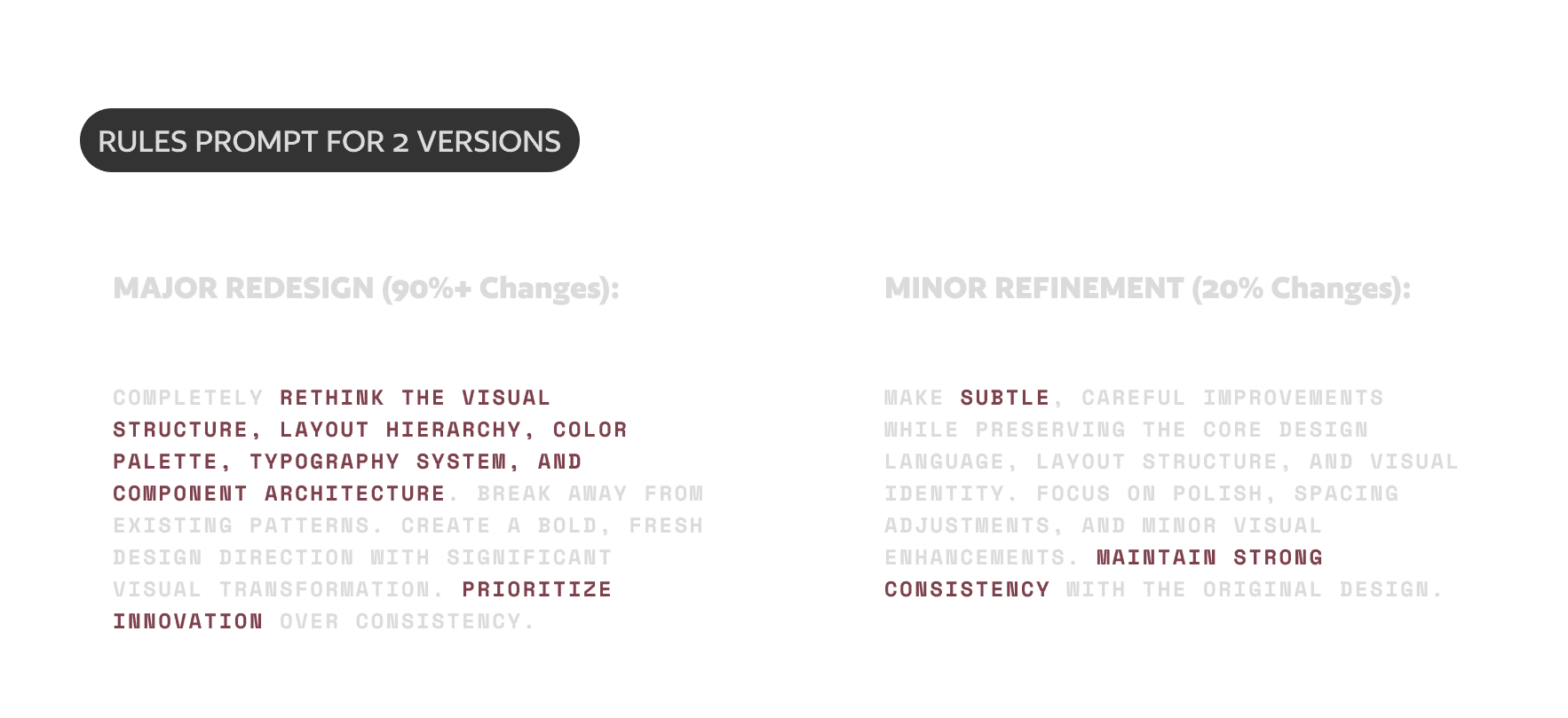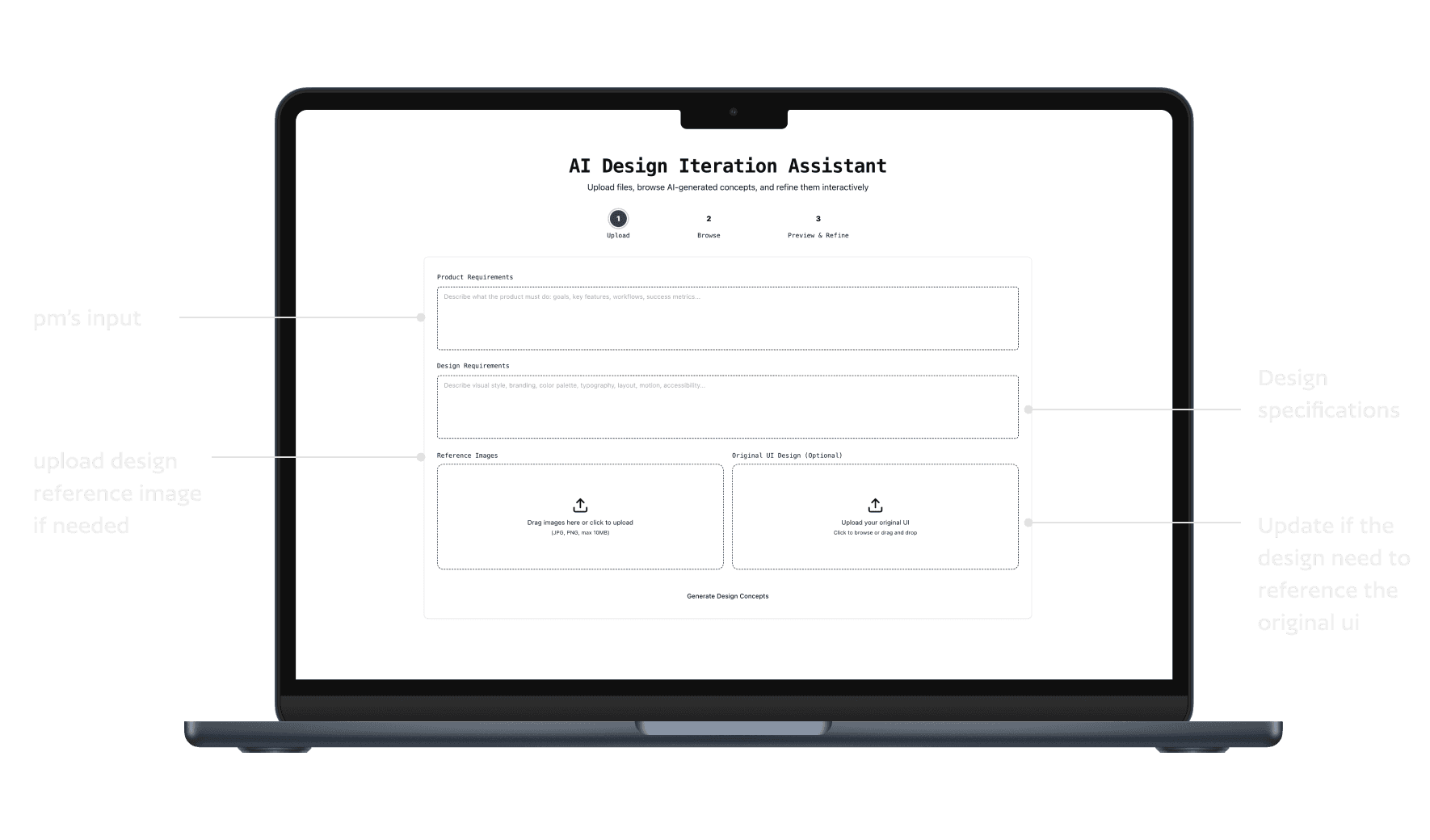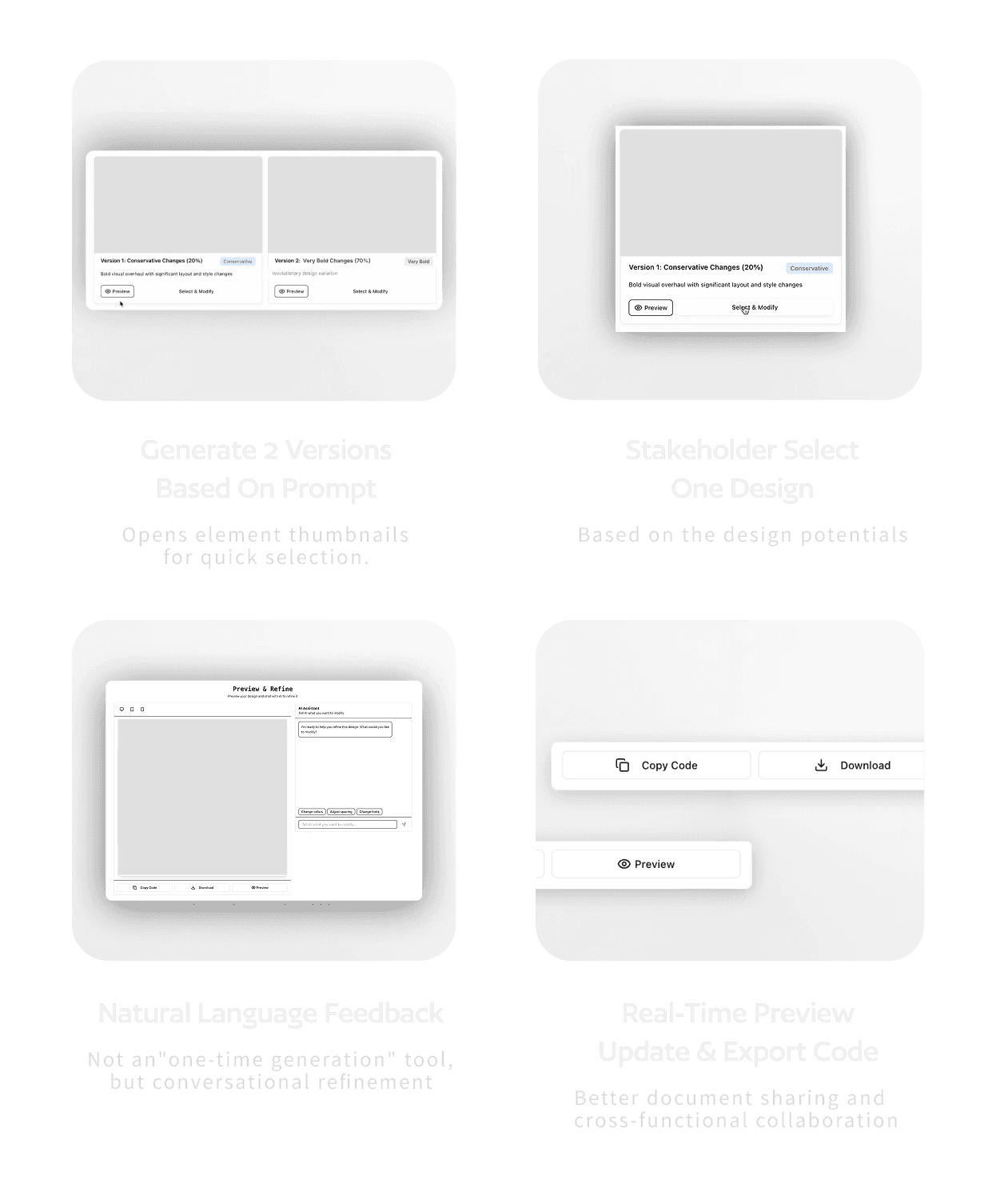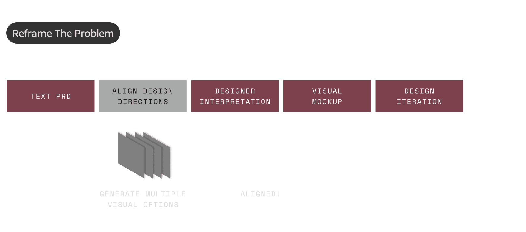 A tool that transforms ambiguous requirements into multiple visual directions, enabling faster stakeholder alignment and freeing designers to focus on refinement.